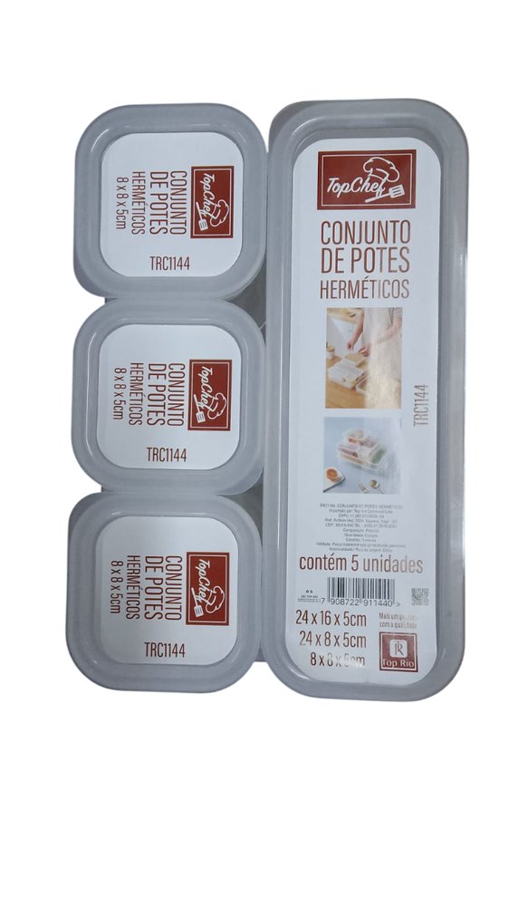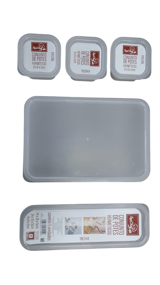 Conjunto 5 Potes Herméticos de Plástico Com Tampa