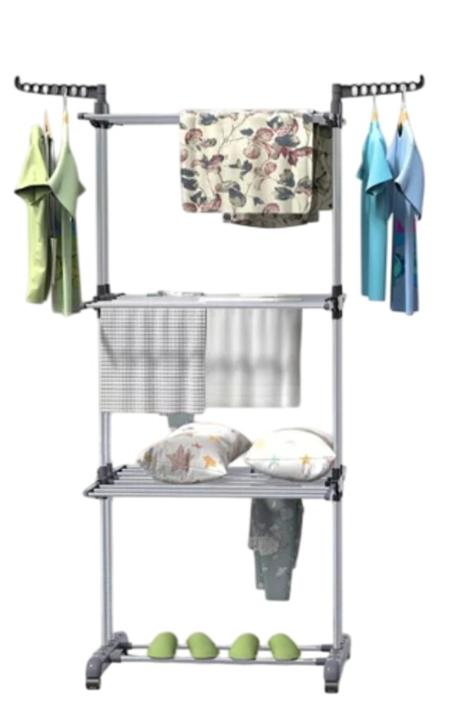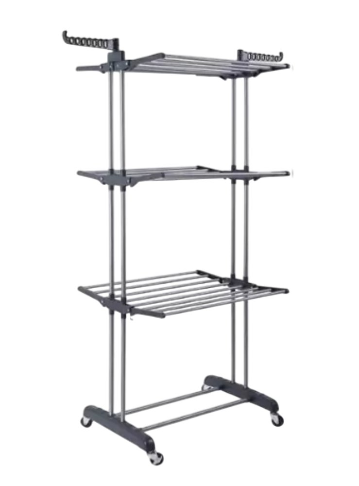 Multi varal de chão com bandejas e pés dobráveis 3 andares Com Cabideiro- Cinza