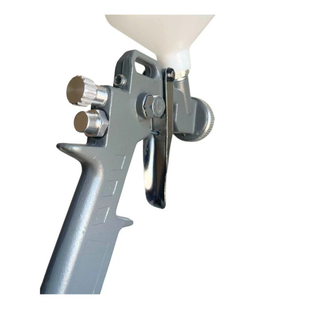 Projetada para trabalhos de pintura em madeira, metal, paredes, veículos e muito mais, a pistola acompanha três tamanhos de bico (1,2mm, 1,5mm e 1,8mm), permitindo maior versatilidade conforme a necessidade do serviço. Possui encaixe com rosca padrão NPT, facilitando a conexão com mangueiras e compressores de ar.